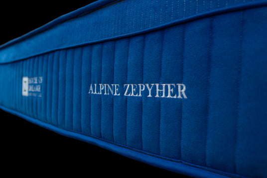 Alpine Zephyr indfanger den forfriskende essens af alpine vinde med et vindinspireret mønster og dristige blå kanter. Lag af VISCOGEL og HVID FELT giver blødhed og kølig ro i kombination med den fæstningslignende støtteteknologi EDGE WEGDE, så du sover dybere og vågner op udhvilet.